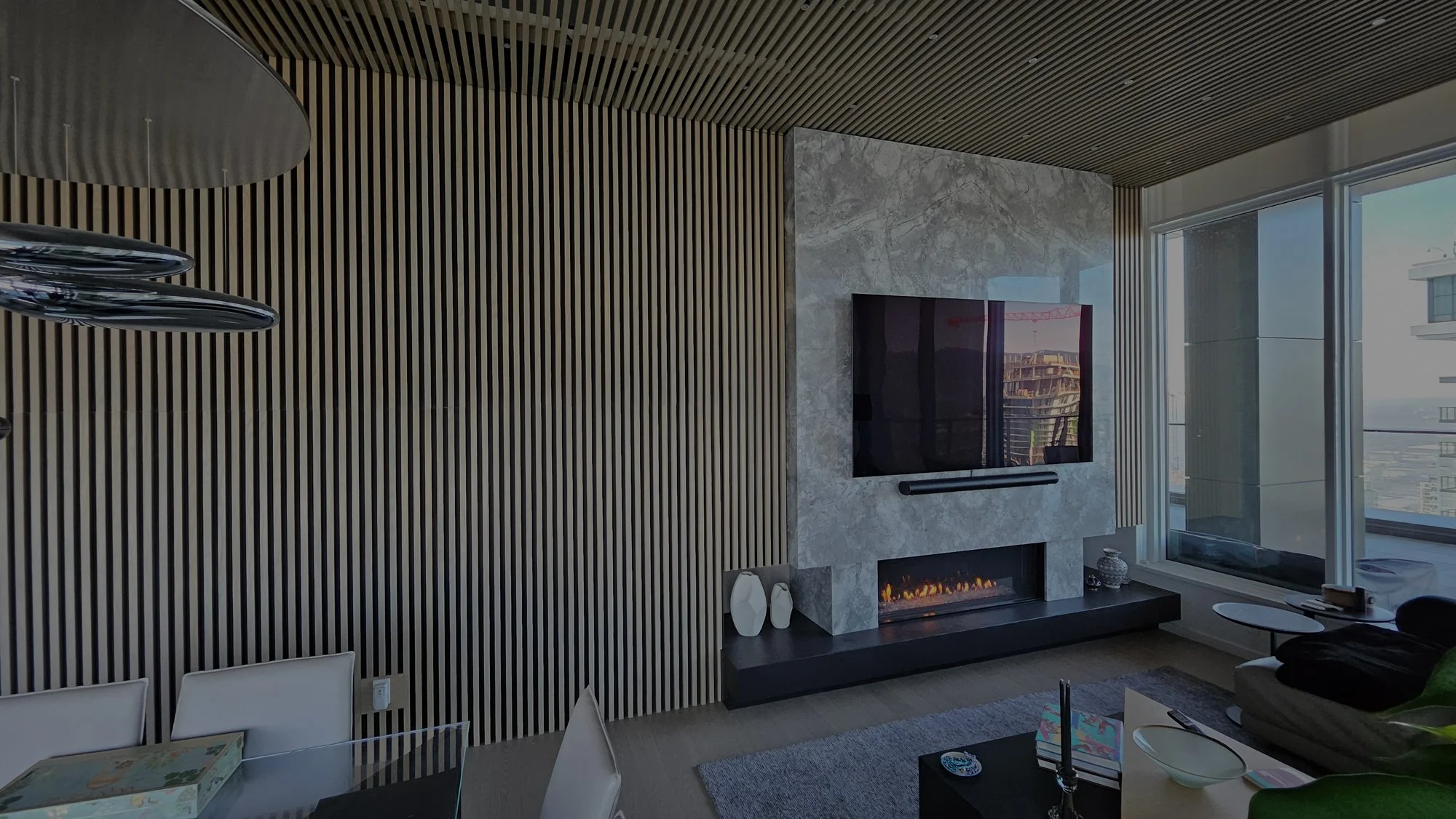 Custom fireplace surrounds and feature walls crafted in wood and mixed materials — designed to anchor the space with warmth, balance, and architectural presence.